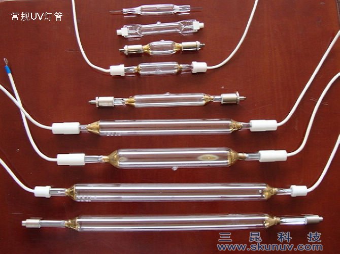 UV灯为气体放电灯,气体放电灯分为弧光放电和辉光放电,UV固化中常用UV 灯为弧光放电灯,其工作原理是:在真空的石英管中加入定量的高纯汞(水银),通过对两端电极提供电压差(压降 ),产生离子放电,从而产生紫外线辐射。