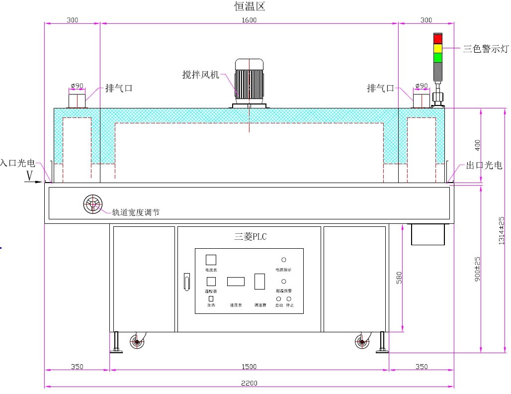 不锈钢内胆三防胶烘干炉1段温区可调式50-350mm宽幅调节