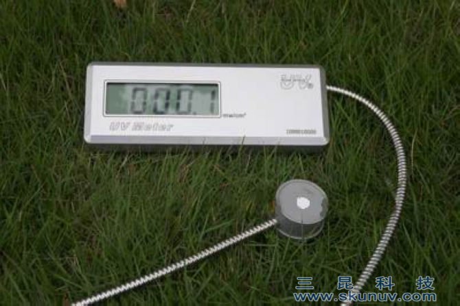 4.随着检测探头的位置不同,控制单元的显示屏将出现对应的光强数据,如显示‘188’,表示其检测到的光强为188mw/cm2;