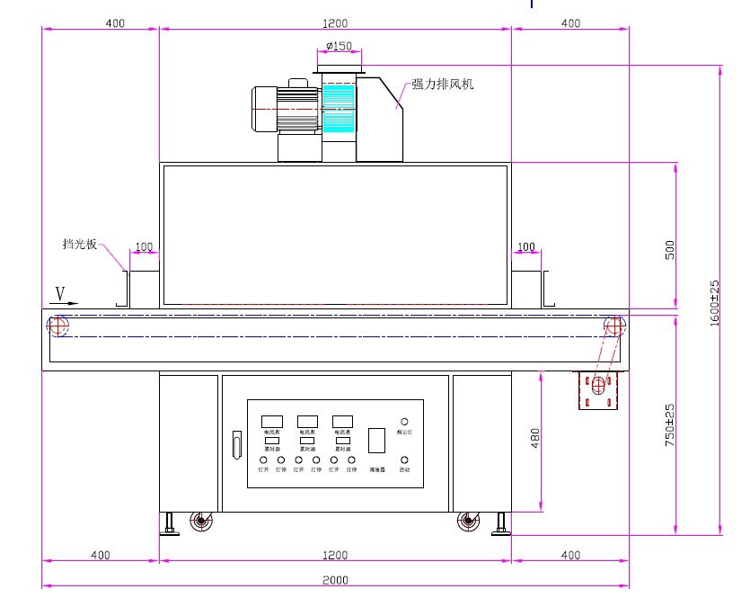 1. UV灯功率:2.0kW*3支(UV汞灯灯)