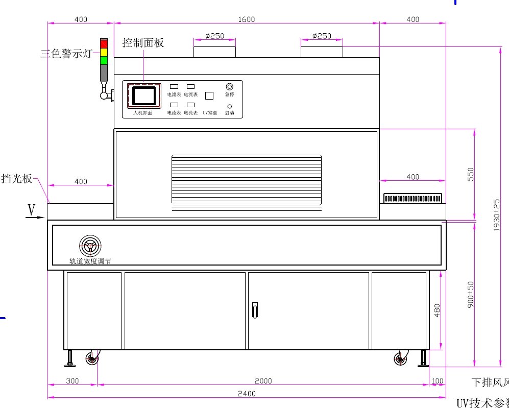 4、UV灯总长:3.0kw:400mm、6kw:620mm